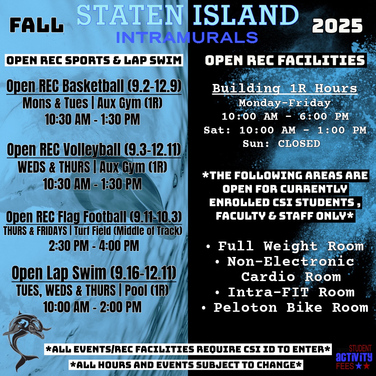 Open lap swim starts next week while open REC sports continues. More information is available online,