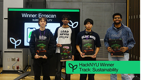 For HackNYU, where Xia Jie and Georgy paired with teammates Arjun Parasuram Prasad and Arnav Sharma, the team shifted focus to environmental sustainability with EcoScan, a mobile app that scans clothing tags and instantly produces an AI-driven eco-impact score. By giving users insight into the environmental footprint of their fashion choices, the team hopes to encourage more sustainable consumer behavior. “EcoScan was created to help people make environmentally conscious decisions,” Xia Jie said. “Both apps were built with the idea of helping people and the Earth.”