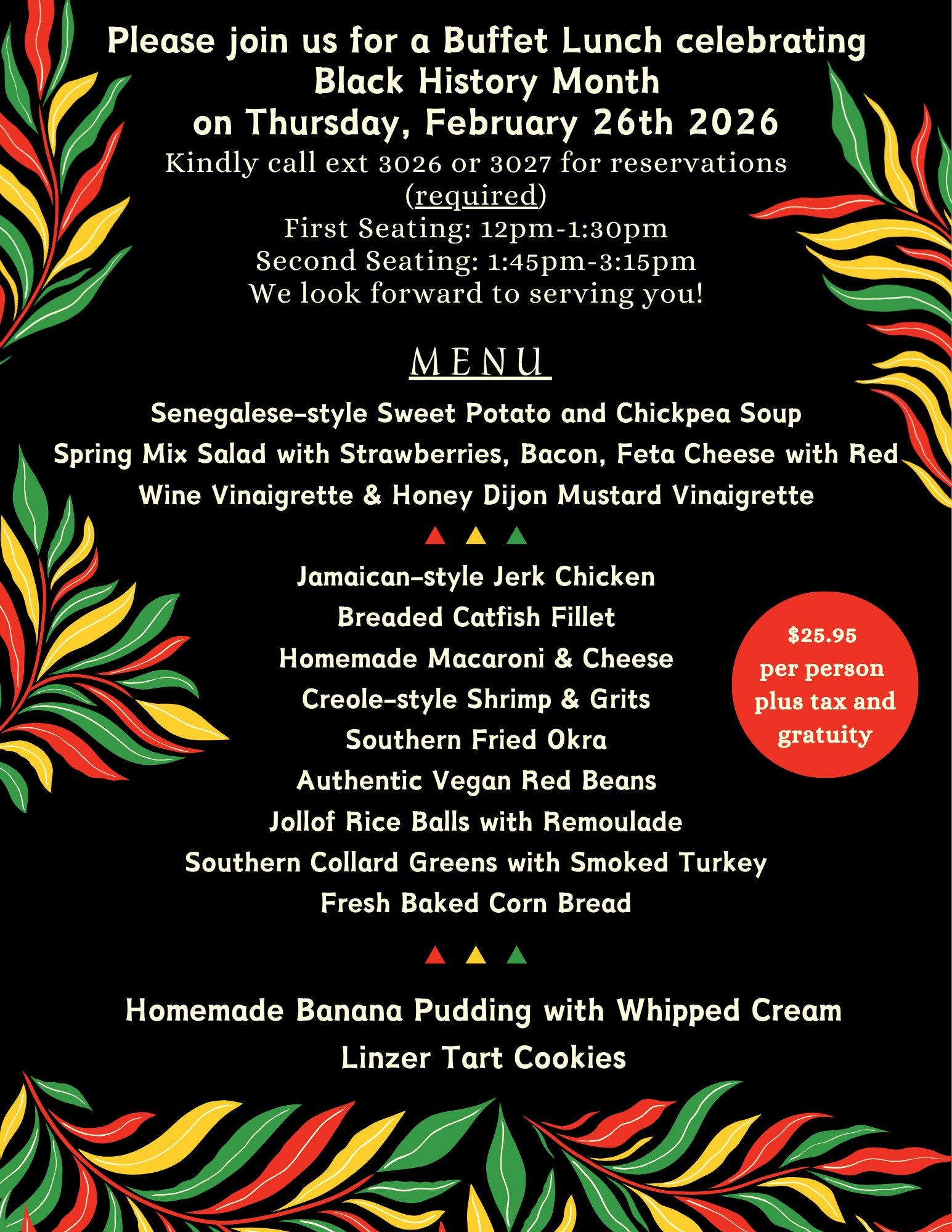 We’d like to invite you to join us for our Black History Buffet in the Park Café.