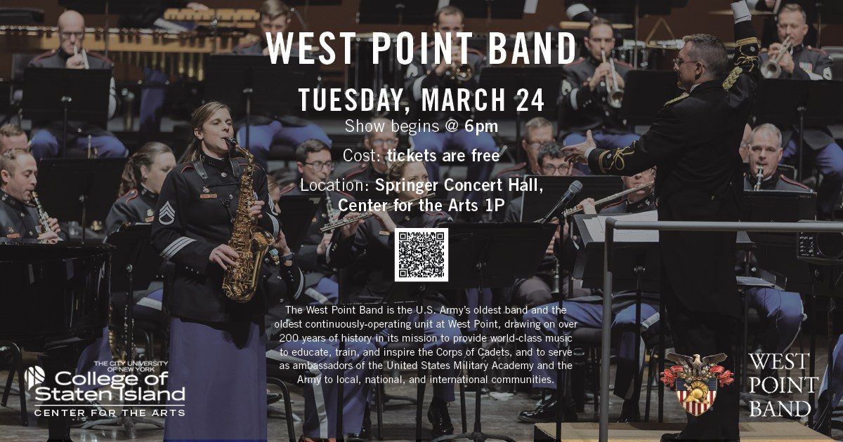 The College of Staten Island is excited to share that The West Point Band’s performance at CSI, previously scheduled for October, has been officially rescheduled to Tuesday, March 24. It will be their first performance at CSI since before COVID! Tickets are FREE for the lone performance at 6pm, and attendees simply need to register to reserve their spot.